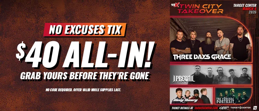 No Excuses Offer! Get $40 All-In Tix for the 93X Twin City Takeover!
