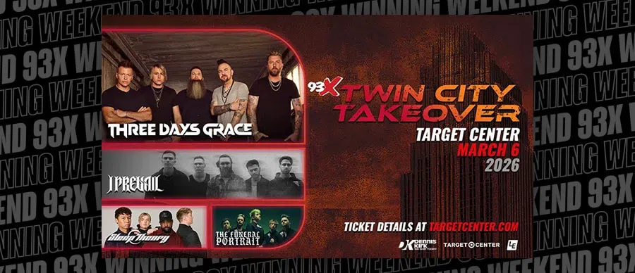 When you hear the keyword this weekend, text it to 651-989-9393 to be entered to win tickets to the 93X Twin City Takeover, March 6th at Target Center starring Three Days Grace, I Prevail, Sleep Theory and The Funeral Portrait!